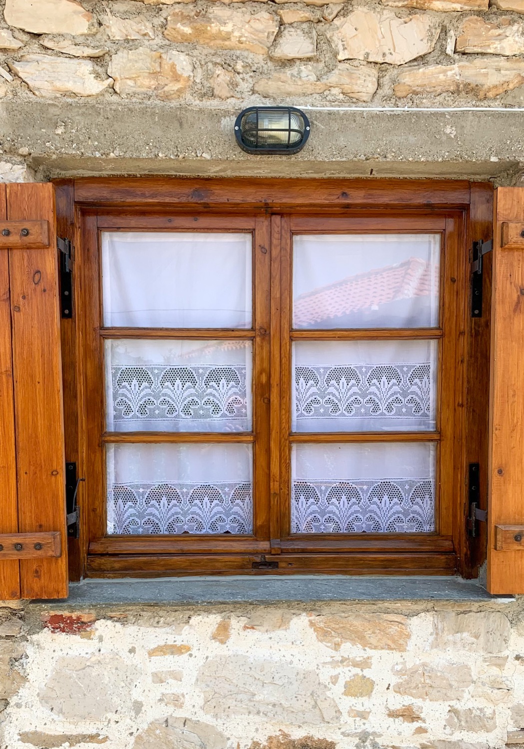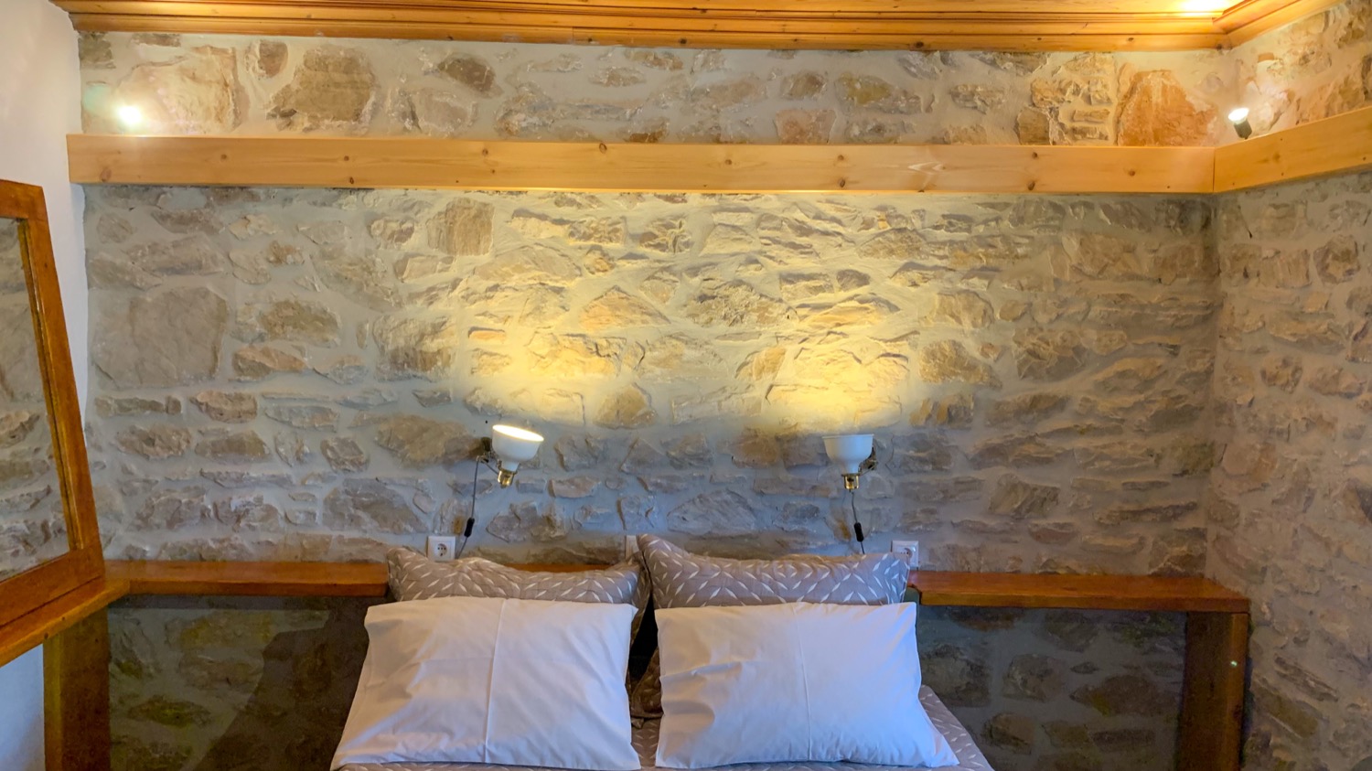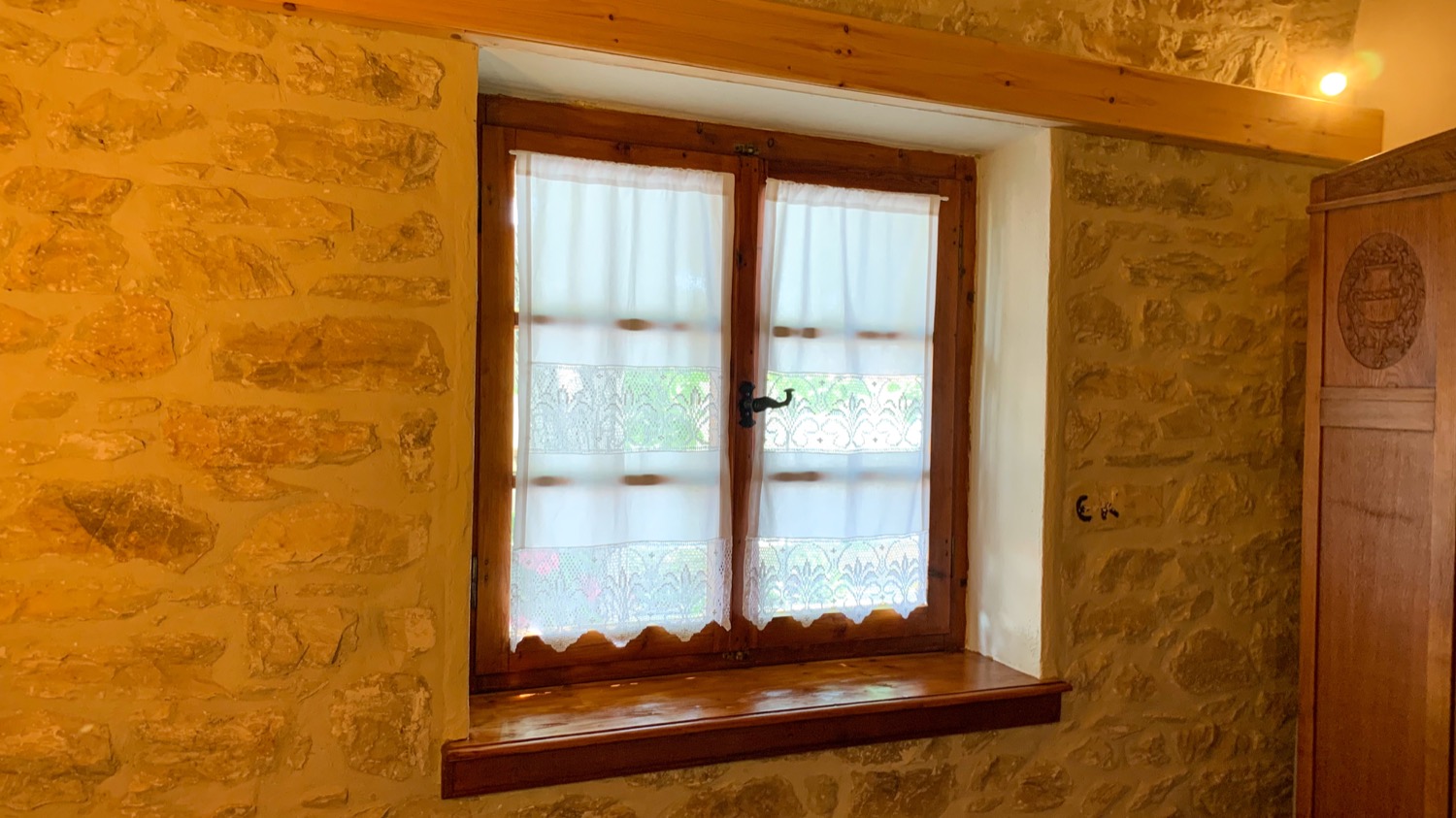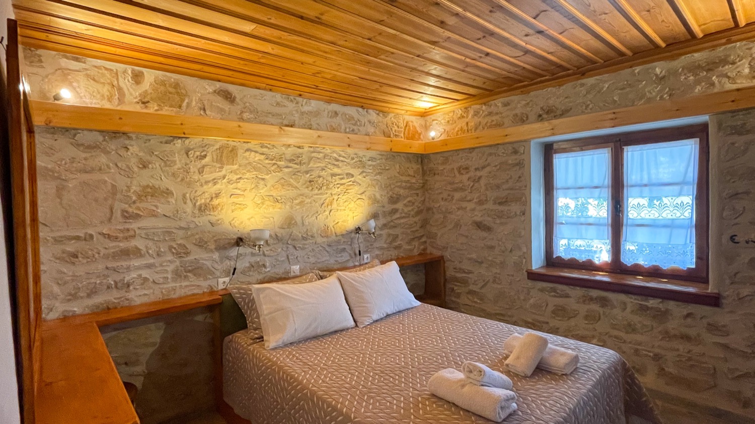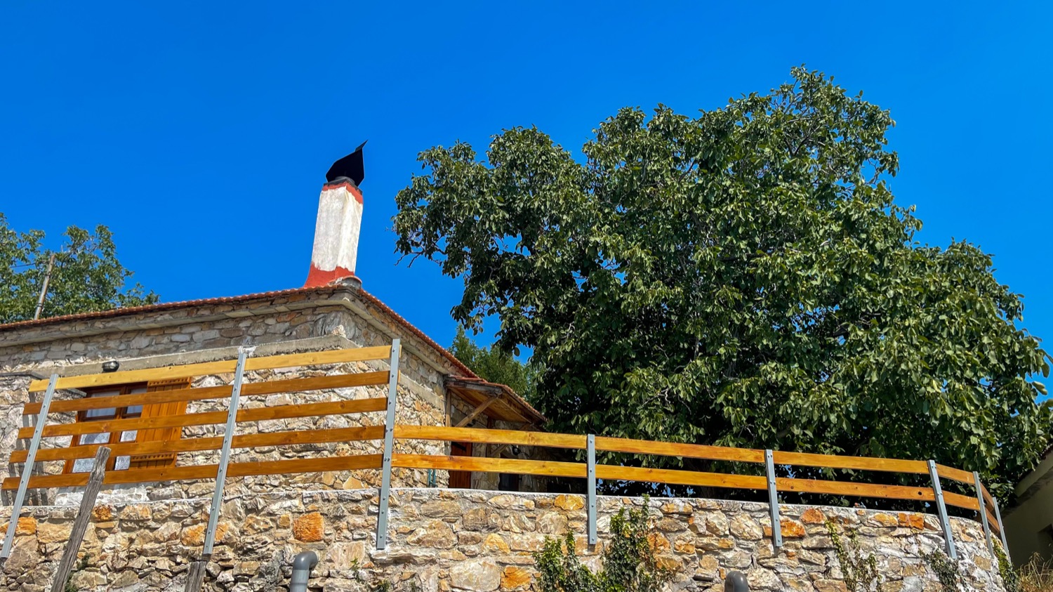 Είναι πετρόκτιστο και αποτελείται από ένα μεγάλο καθιστικό - κουζίνα, δύο υπνοδωμάτια με διπλά κρεβάτια και μία μεγάλη βεράντα. Μπορούν να κοιμηθούν μέχρι 8 άτομα. Από δύο σε κάθε υπνοδωμάτιο και άλλα 4 στο καθιστικό, σε 2 μπαουλοντίβανα με πολύ καλά στρώματα και σε έναν καναπέ-κρεβάτι. Η κουζίνα είναι πλήρως εξοπλισμένη, υπάρχει πλυντήριο ρούχων και διατίθεται και παρκοκρέβατο με ειδικά κατασκευασμένο στρώμα για βρέφη. Κάθε δωμάτιο διαθέτει ένα μοντέρνο κλιματιστικό και επίσης στο καθιστικό υπάρχει τζάκι. Ξυλεία για το τζάκι διατίθεται από εμένα. Πίσω από το σπίτι υπάρχει ιδιωτικός χώρος στάθμευσης για 2+ αυτοκίνητα και το όλο σπίτι βρίσκεται μέσα σε ένα οικόπεδο 1600τμ με δέντρα και βότανα.