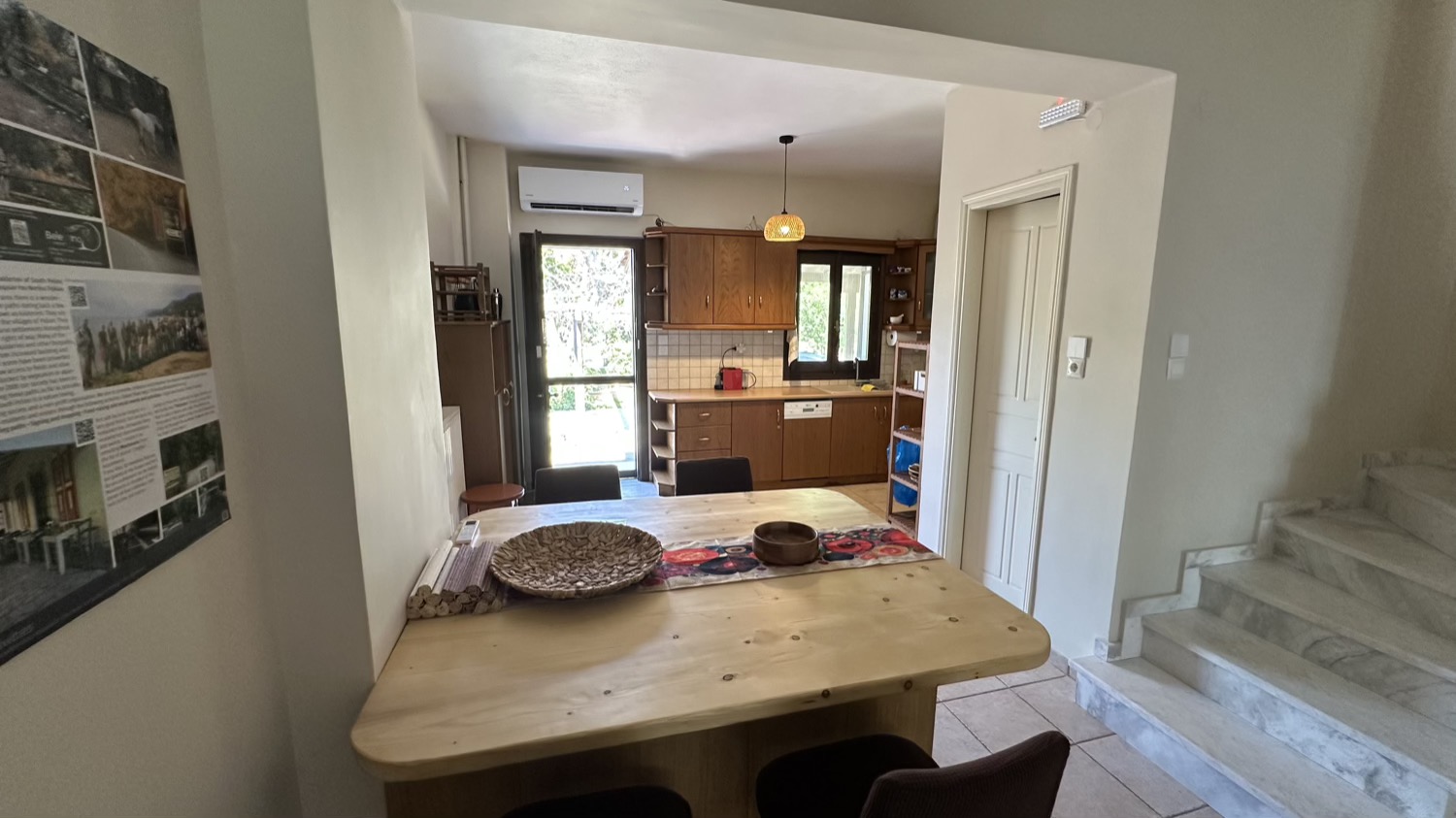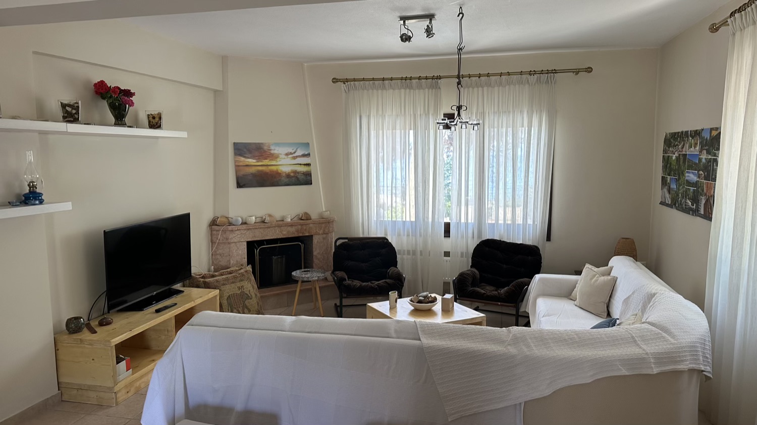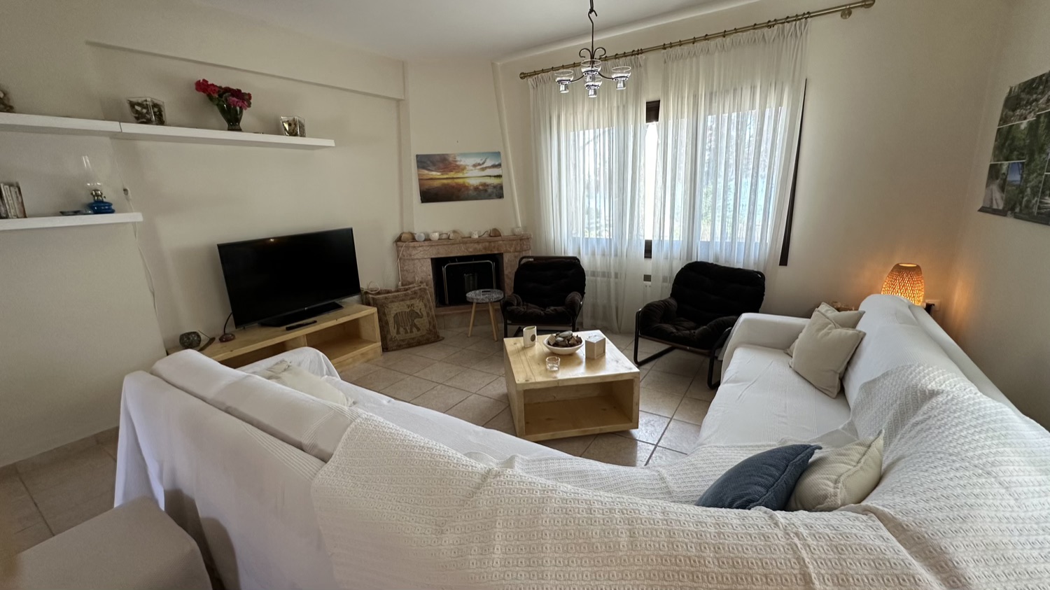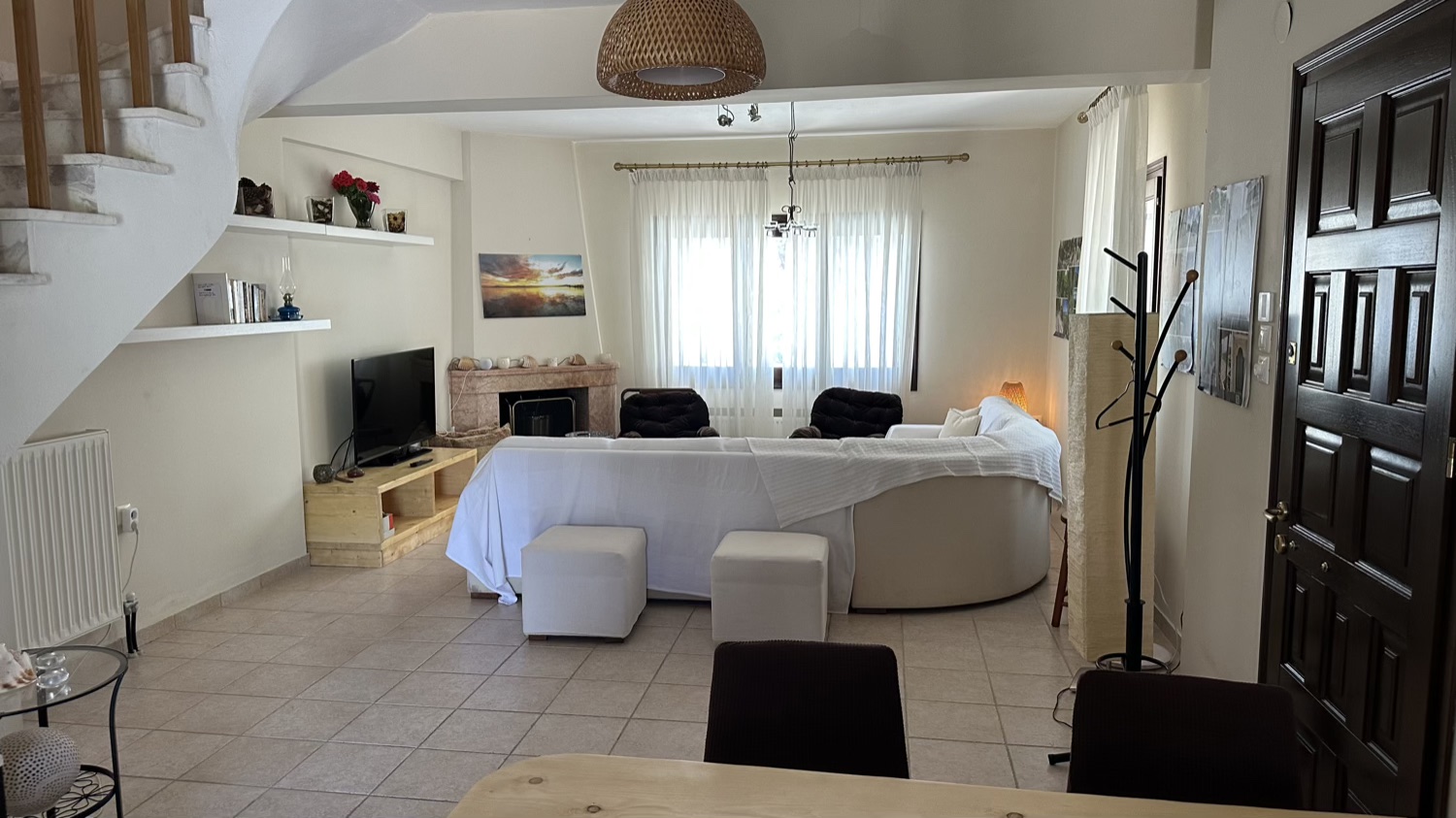 Παραλιακά σπίτιαΜία διώροφη μαιζονέτα 120 τμ ακριβώς μπροστά στην θάλασσα, που ολοκληρώθηκε το 2006 και ανακαινίστηκε ελαφρώς το 2019. Το ισόγειο αποτελείται από ένα ενιαίο σαλόνι-κουζίνα συν ένα μικρό WC ενώ ο όροφος έχει τα δύο μεγάλα υπνοδωμάτια, το μπάνιο και ένα μικρό ιδιωτικό δωμάτιο (γραφείο). Η κουζίνα είναι πλήρως εξοπλισμένη και υπάρχει και πλυντήριο ρούχων. Μπορούν να κοιμηθούν μέχρι 7 άτομα (οι δύο σε αερόστρωμα), 2 στο μπροστινό υπνοδωμάτιο, 3 στο πίσω, όλοι σε καινούργια στρώματα πολυτελείας, και 2 στο σαλόνι σε αερόστρωμα. Στην πίσω πλευρά του οικοπέδου υπάρχει χώρος στάθμευσης για δύο αυτοκίνητα και ένας μικρός κήπος (το καλοκαίρι φυτεύω ζαρζαβατικά για τους επισκέπτες). Μπροστά είναι η βεράντα του σπιτιού και ένας μεγάλος κήπος με ξαπλώστρες και χώρο αναψυχής.
